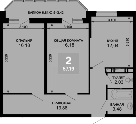 6.84 м2